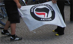 Berlin :: Am 26.07.06 fand in Berlin Mitte eine Antifademo statt. 400 Demonstranten stürmten eine angekündigte Kundgebung der NPD um den Faschisten zu zeigen was Deutschland von ihrer Politik hält. Fluchtartig wurden die Faschos in die Flucht geschlagen und kamen nie wieder zurück.