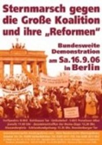 Rote Fahne-News (Artikel), 04.09.06: Angesichts der Verschärfungen von Hartz IV, der Mehrwertsteuer-Erhöhung ab 2007, des geplanten „Gesundheitsfonds“ und weiterer sozialer „Grausamkeiten“ der Merkel/Müntefering-Regierung wächst in der Bevölkerung der Unmut. Es entfaltet sich eine breite Auseinandersetzung darum, der Regierung mit Protesten auf der Straße und in den Betrieben einen „heißen Herbst“ zu bereiten. Den Auftakt bildet der Sternmarsch gegen die Regierung am 16. September in Berlin, zu dem die bundesweite Montagsdemo-Bewegung, Gewerkschafter, Betriebsräte, Jugendvertreter sowie zahlreiche weitere Erstunterzeichner (siehe www.bundesweite-montagsdemo.com) aufrufen.