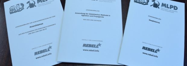 Der Jugendverband REBELL hat 3 neue Broschüren zu den Themen Anarchismus, Agitation und Propaganda sowie zum Skeptizismus veröffentlicht. Sie enthalten unter anderem Texte der Klassiker des Marxismus-Leninismus und der Linie der MLPD. Sie sind für den Preis von 2,00€ beim REBELL erhältlich. Ihr könnt sie hier bestellen oder bei der REBELL Gruppe vor Ort erwerben