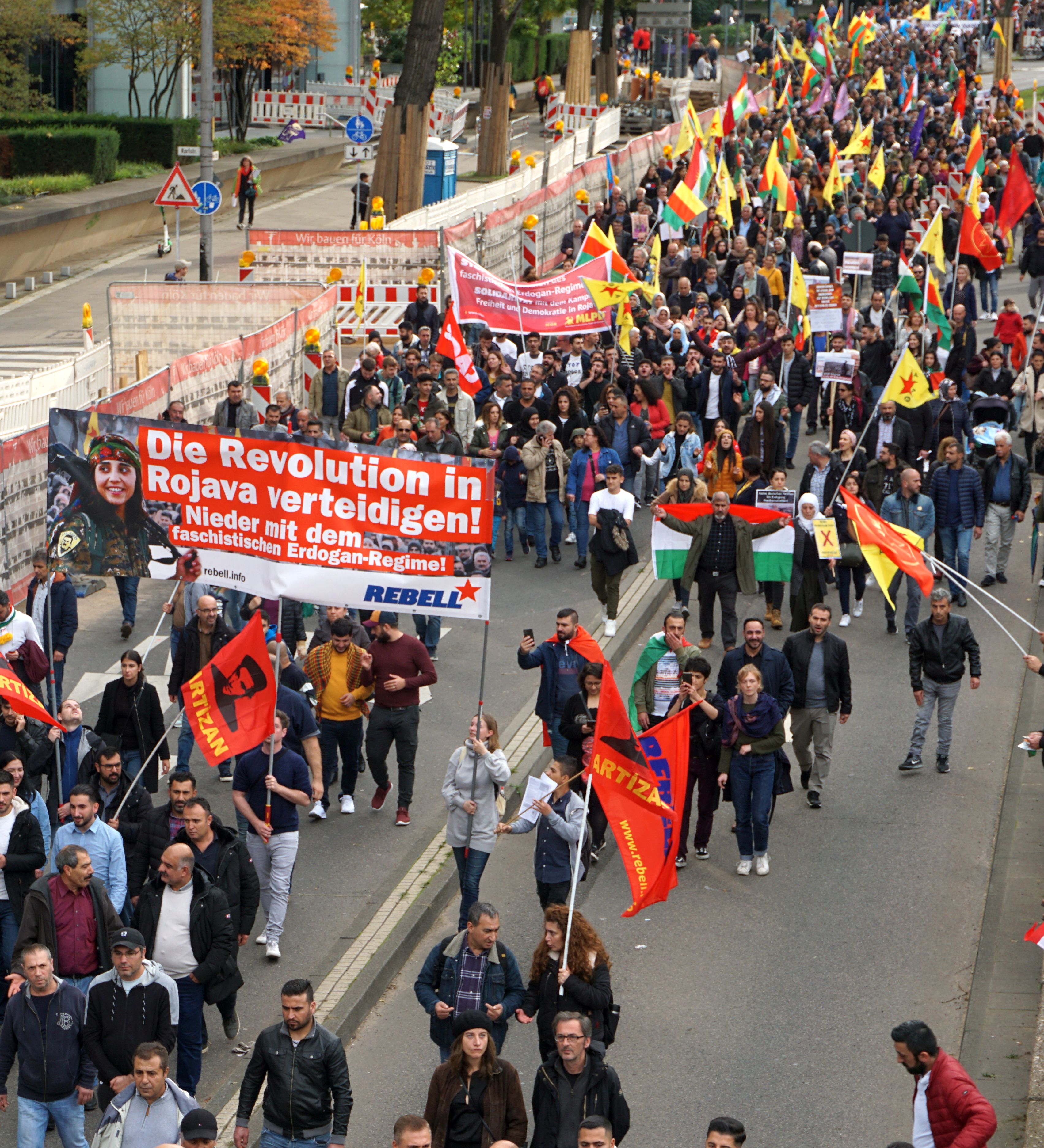 Der Jugendverband REBELL hat ein neues Transparent anlässlich des türkischen Angriffskrieg auf Rojava herausgebracht. Es wurde bereits mehrmals auf Demonstrationen eingesetzt und kommt super an! Auf dem Transparent steht: „Rojavas Revolution verteidigen! Nieder mit dem faschistischen Erdogan-Regime!“ Siehe Fotos