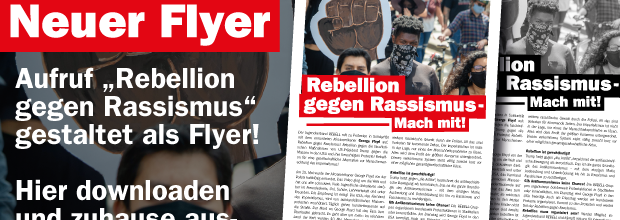 Den Aufruf „Rebellion gegen Rassismus – Mach mit!“ des REBELL gibt es nun auch als gestalteten Flyer. Die Druckdatei könnt ihr hier herunterladen: Die Dateien sind so gemacht, das man sie auf einem normalen Drucker ausdrucken kann. Auf die Rückseite kann man noch örtliche Details wie Kontaktadresse, Aktionen, Treffen usw. schreiben.