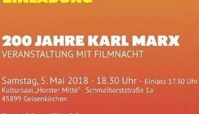 05.05.2018 18:30 Uhr Kultursaal „Horster Mitte”, Schmalhorststraße 1a, 45899 Gelsenkirchen Festakt mit Ansprache von Gabi Fechtner, MLPD-Vorsitzende, vielfältige Beiträge und …